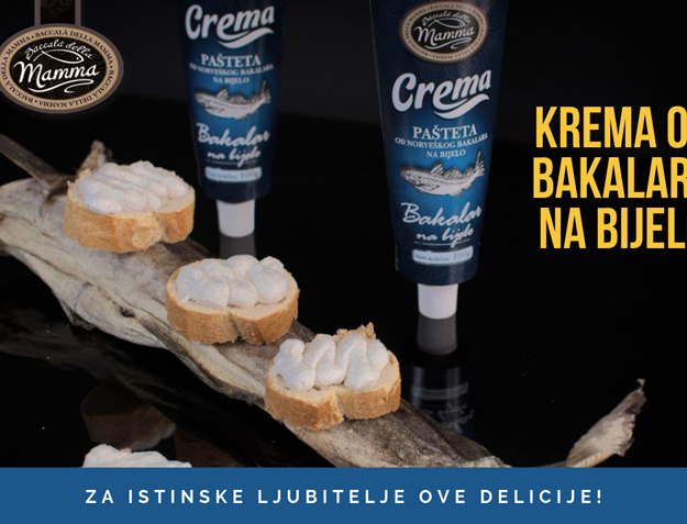 Osim toga, valja izdvojiti i kreme od norveškog bakalara na bijelo, pripremljene prema tradicionalnim recepturama kako bi zadovoljile svako nepce. Baccala della Mamma brand predstavlja kremu od bakalara na bijelo s dodatkom djevičanskog maslinovog ulja. Za sve ljubitelje pikantnog okusa tu je Bakalar pikantino s blagom dominacijom arome paprike. Krema od bakalara na bijelo s dodatkom aromatičnih tartufa iznenadit će vaša nepca netipičnim kombinacijama aroma. Idealne su za posluživanju na tostu ili krekerima te kao stvorene za obiteljska i prijateljska druženja.